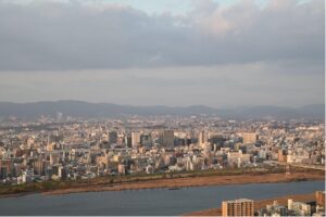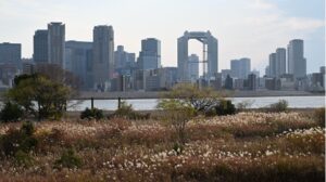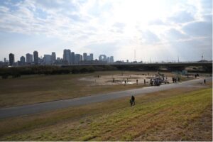 新大阪の近くでは、梅田がある南側には淀川が、対する北側の京都方面には神崎川が流れています。これら2本の川に挟まれ、川べりには四季折々の美しい風景が見られます。さらに、河川敷には子どもたちが遊ぶ場所が多くあります。新大阪は、生活がしやすい場所でもあります。