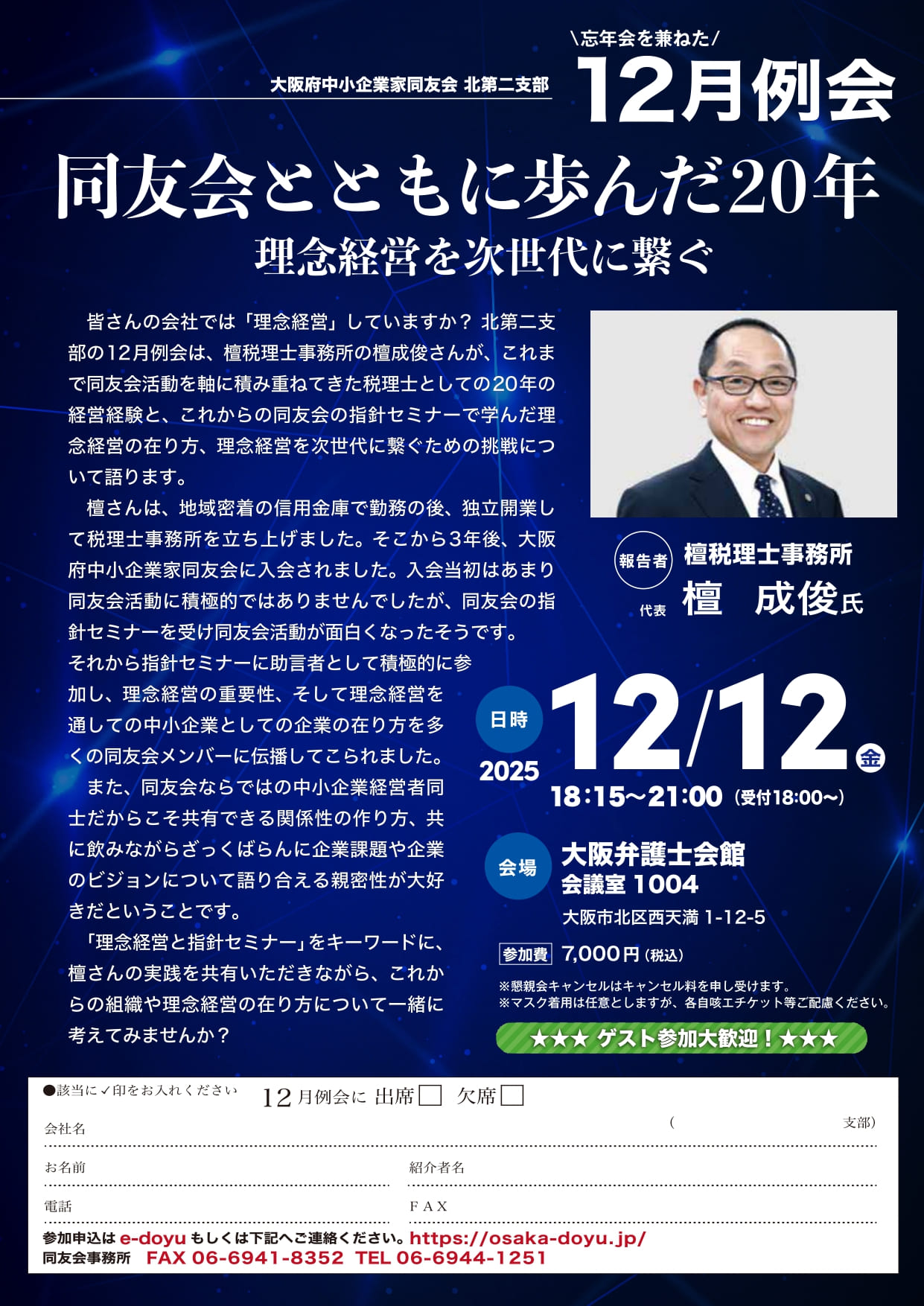 同友会とともに歩んだ20年〜理念経営を次世代に繋ぐ〜(2025/12/12)