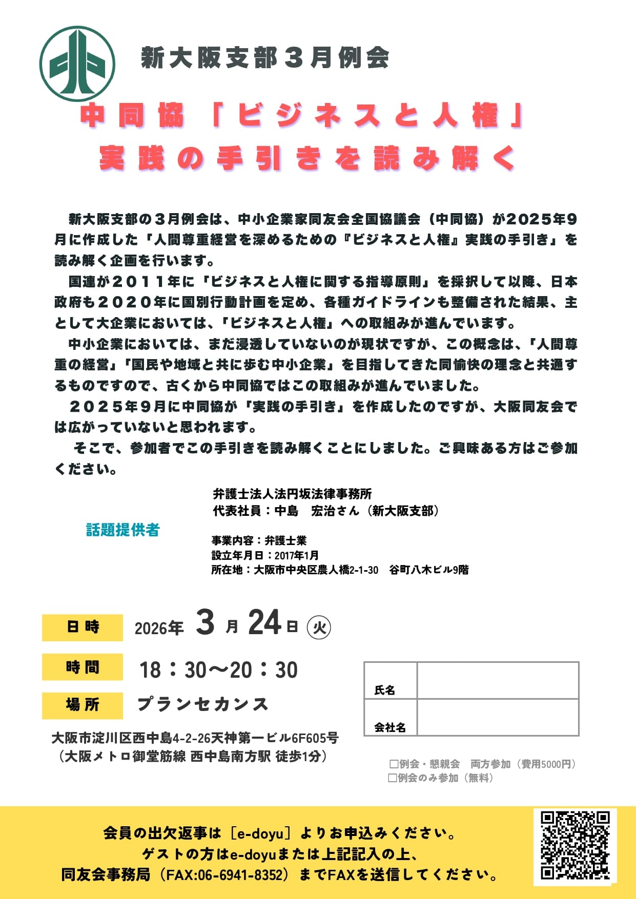 新大阪支部の3月例会は、中小企業家同友会全国協議会(中同協)が2025年9月に作成した