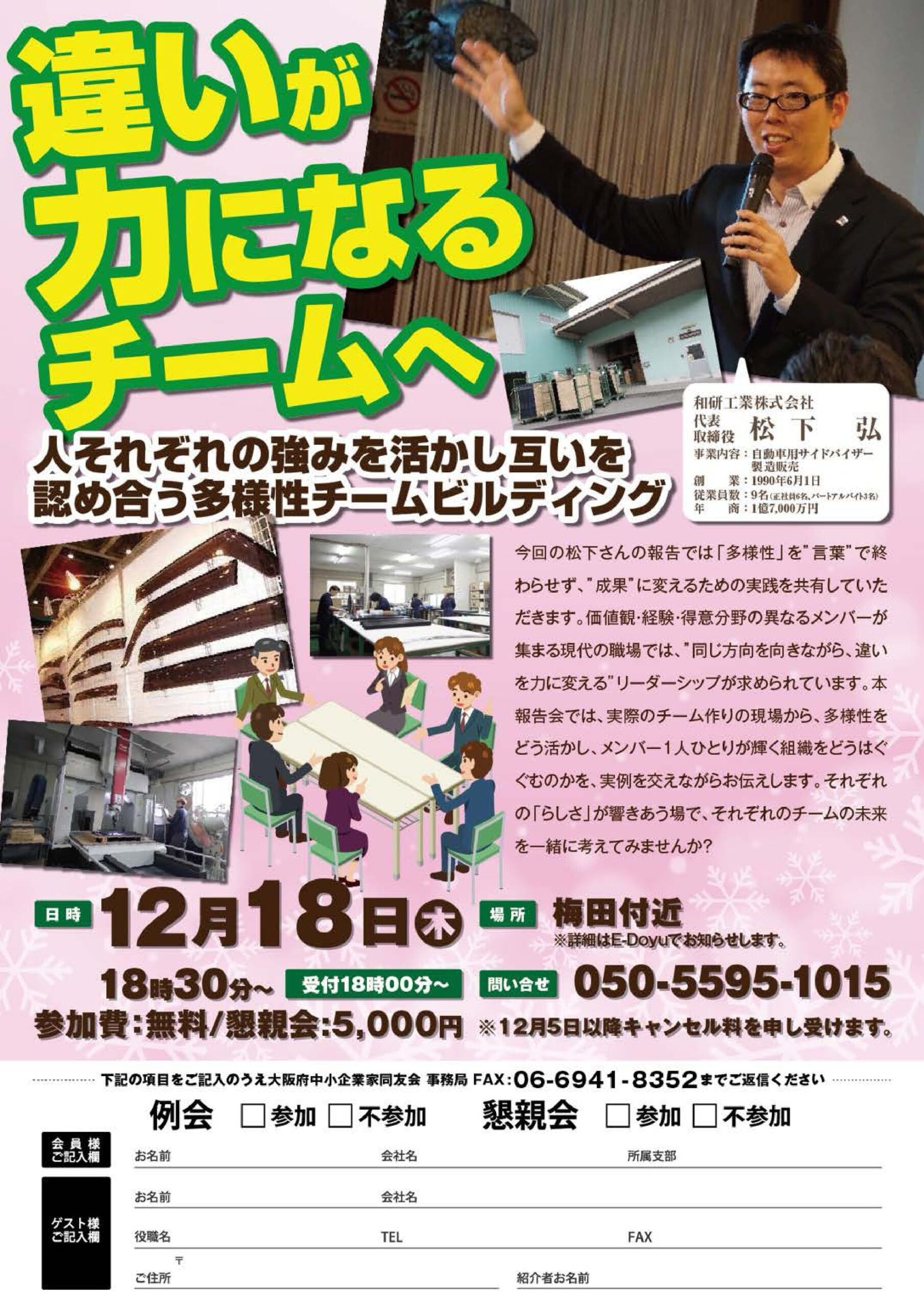 北第一支部 2025/12/18 (木) 18:30 違いが力になるチームへ ~人それぞれの強みを活かし互いを認め合う多様性のチームビルディング(2025/12/18) 大阪北エリア 人を生かす経営経営体験報告 大阪北ブロック 詳細はこちら